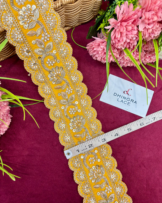 Beautiful Silk Based Handwork 3 Inches Broad Lace Yellow 150125