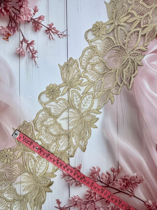 Beautiful Organza Based Zari Work Lace Gold 260725/280725