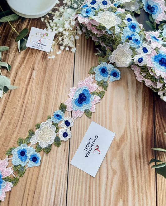 Beautiful Guipure Multicolour Sky Blue Flower Lace 070725