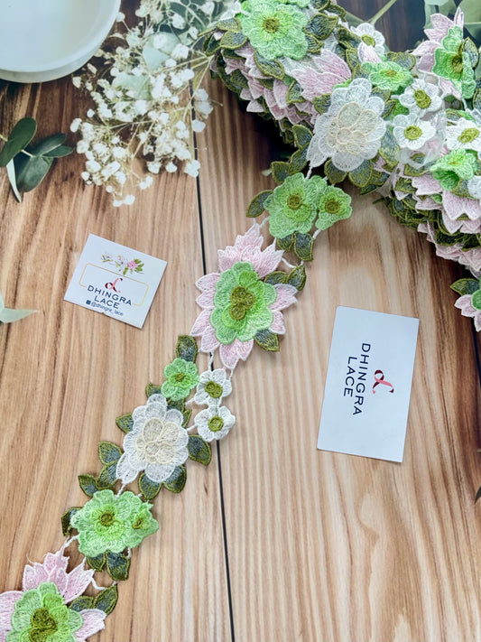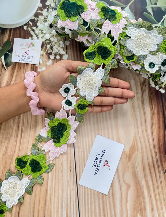 Beautiful Guipure Multicolour Green Flower Lace 070725