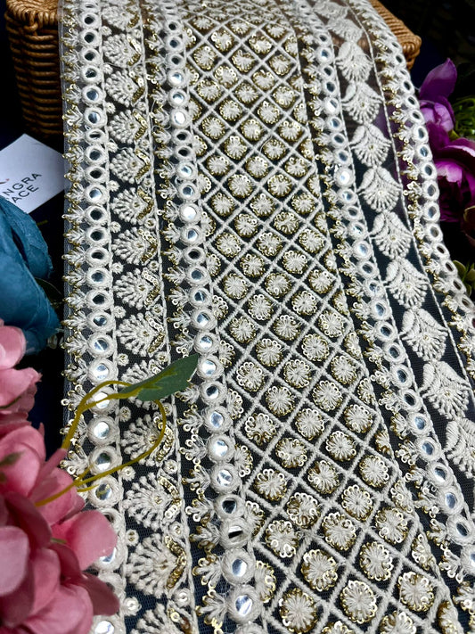 Beautiful 8 Inches Broad Lakhnavi Border Off White 130824