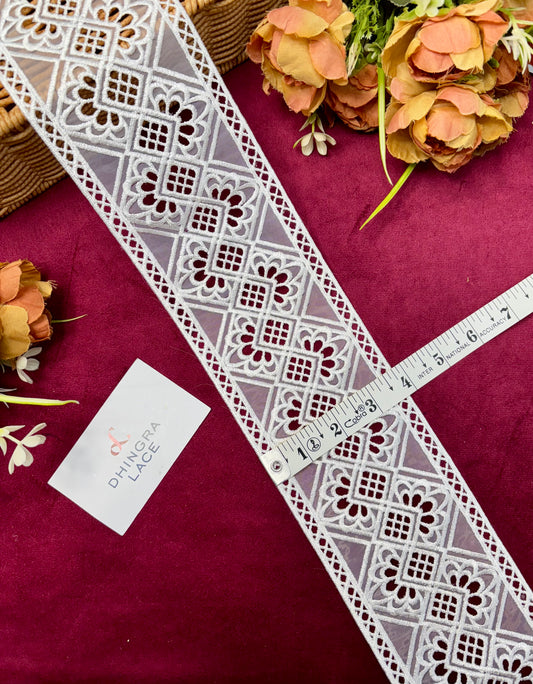 Beautiful Organza Based 3 Inches Broad Lace White 180125/ 260225