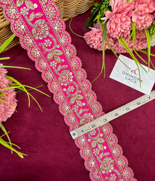 Beautiful Silk Based Handwork 3 Inches Broad Lace Magenta 150125