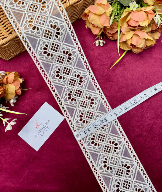 Beautiful Organza Based 3.5 Inches Broad Lace Off White 180125/250125