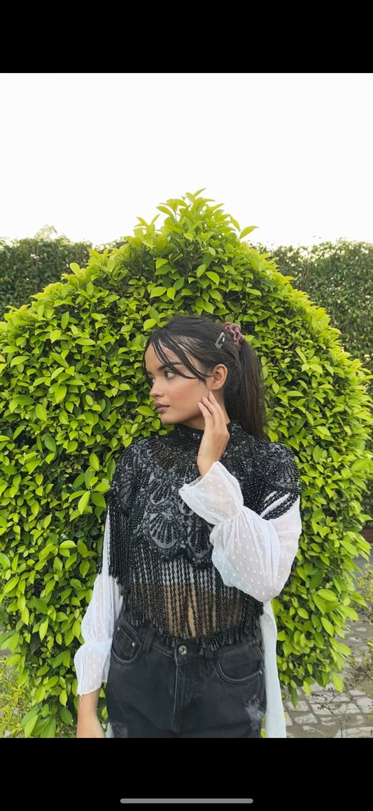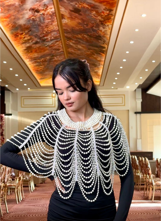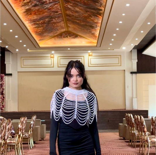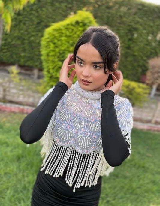 Beautiful Handwork Cutpipe & Sequins And Pearls Work Cape Black 290824