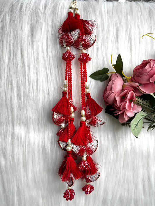 Beautiful Handwork Hanging Sequence Cutpipe And Crystal Work Red Colour 020824