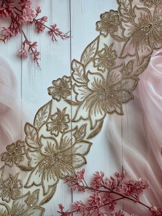 Beautiful Organza Based Flower Lace Rose Gold 5405/190525/170625