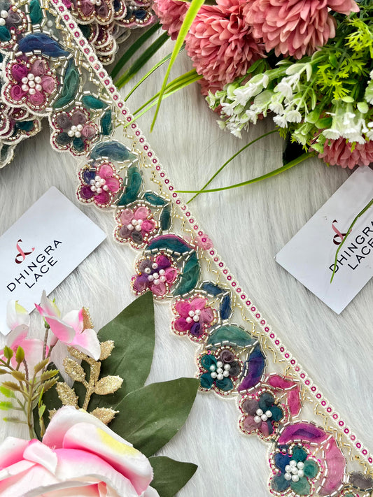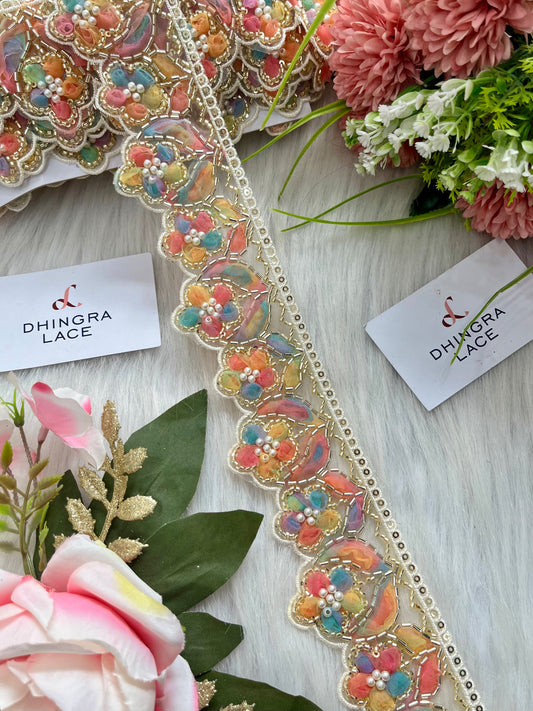 Beautiful Organza Based Handwork Lace Multicolor 190625/280625