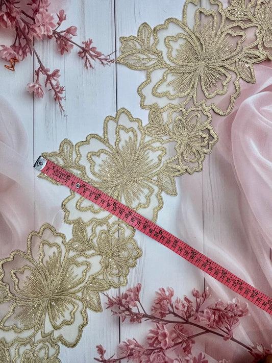 Beautiful Organza Based Zari Work Lace Gold 260725 / 280725