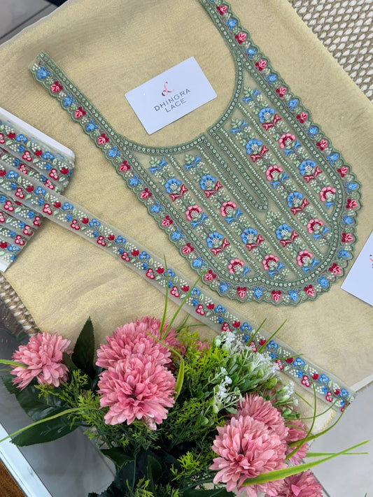 Beautiful Net Based Handwork Neck With 1 Meter Lace 060525