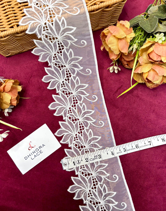 Beautiful Organza Based 4.5 Inches Broad Lace White 180125/250125