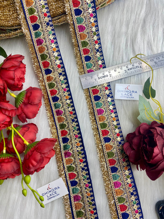 Beautiful Navy Blue Mult Sabyasachi 2 Inches Broad Lace 9 Meters 050126