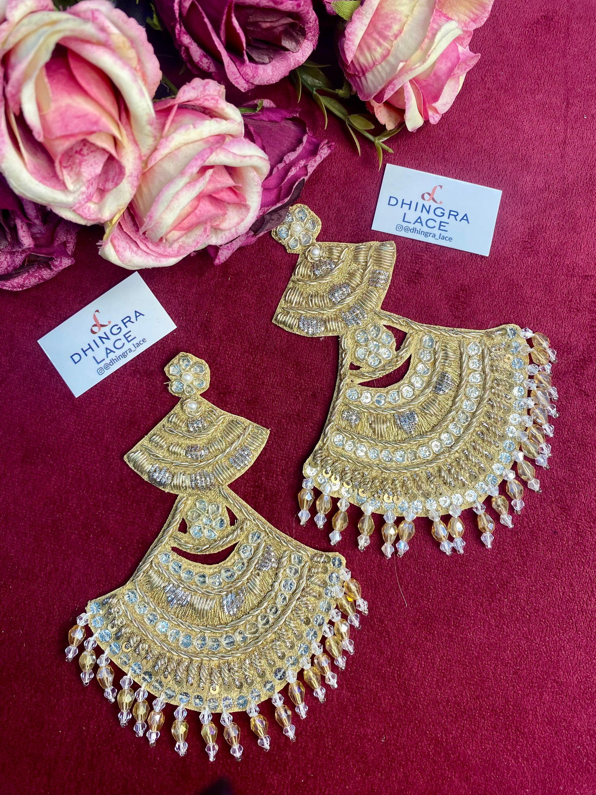 Beautiful Crystal & Zardozi Work Patches Gold L 5 W 4 Inches Pair (2 Pieces) 261225