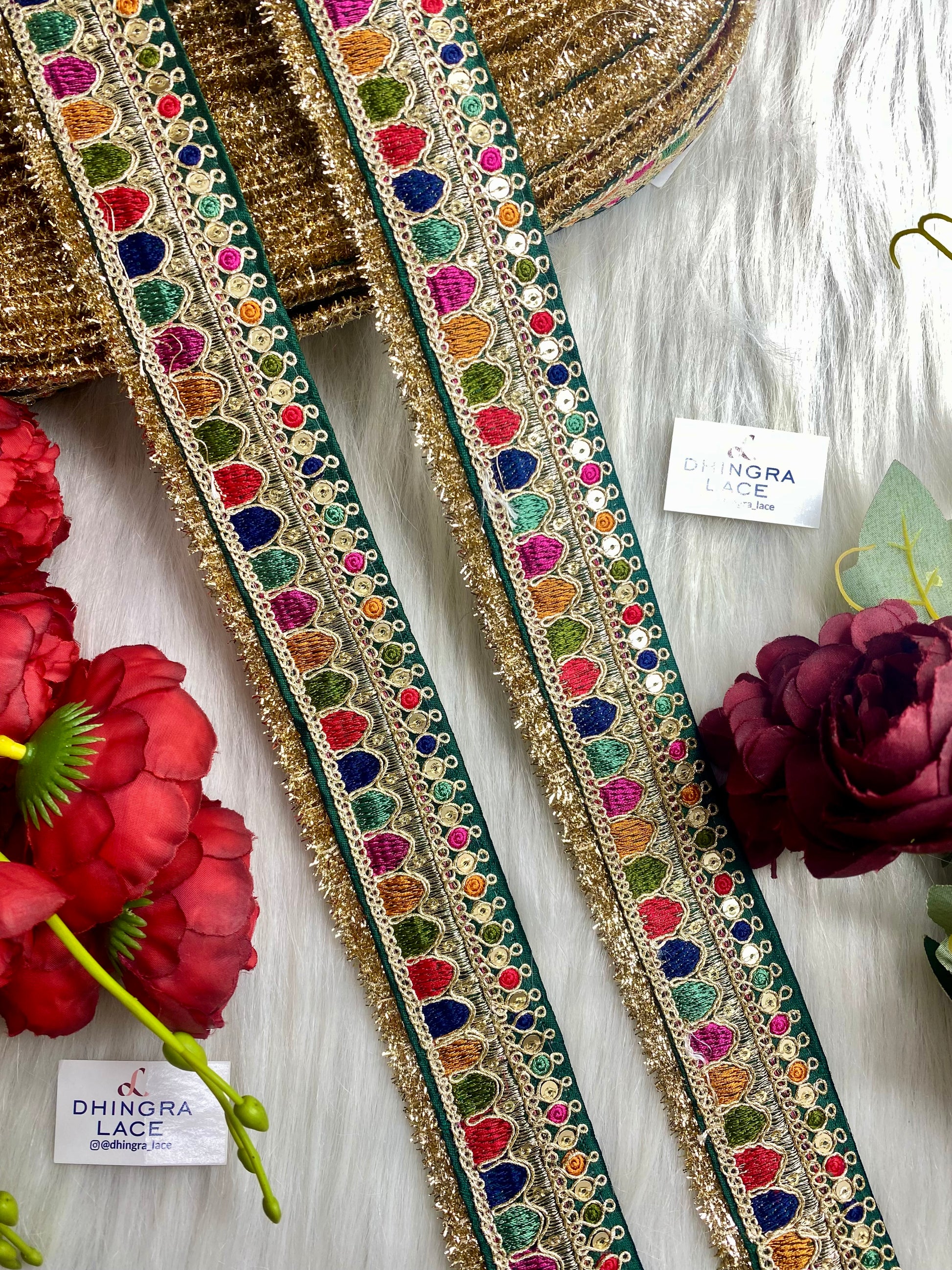 Upgrade your fashion game with our Beautiful Green Multi Sabyasachi lace! Measuring 2 inches broad, this lace adds a touch of elegance to any garment. Made from high-quality materials, it is both durable and stylish. Elevate your outfits with this versatile and on-trend accessory.