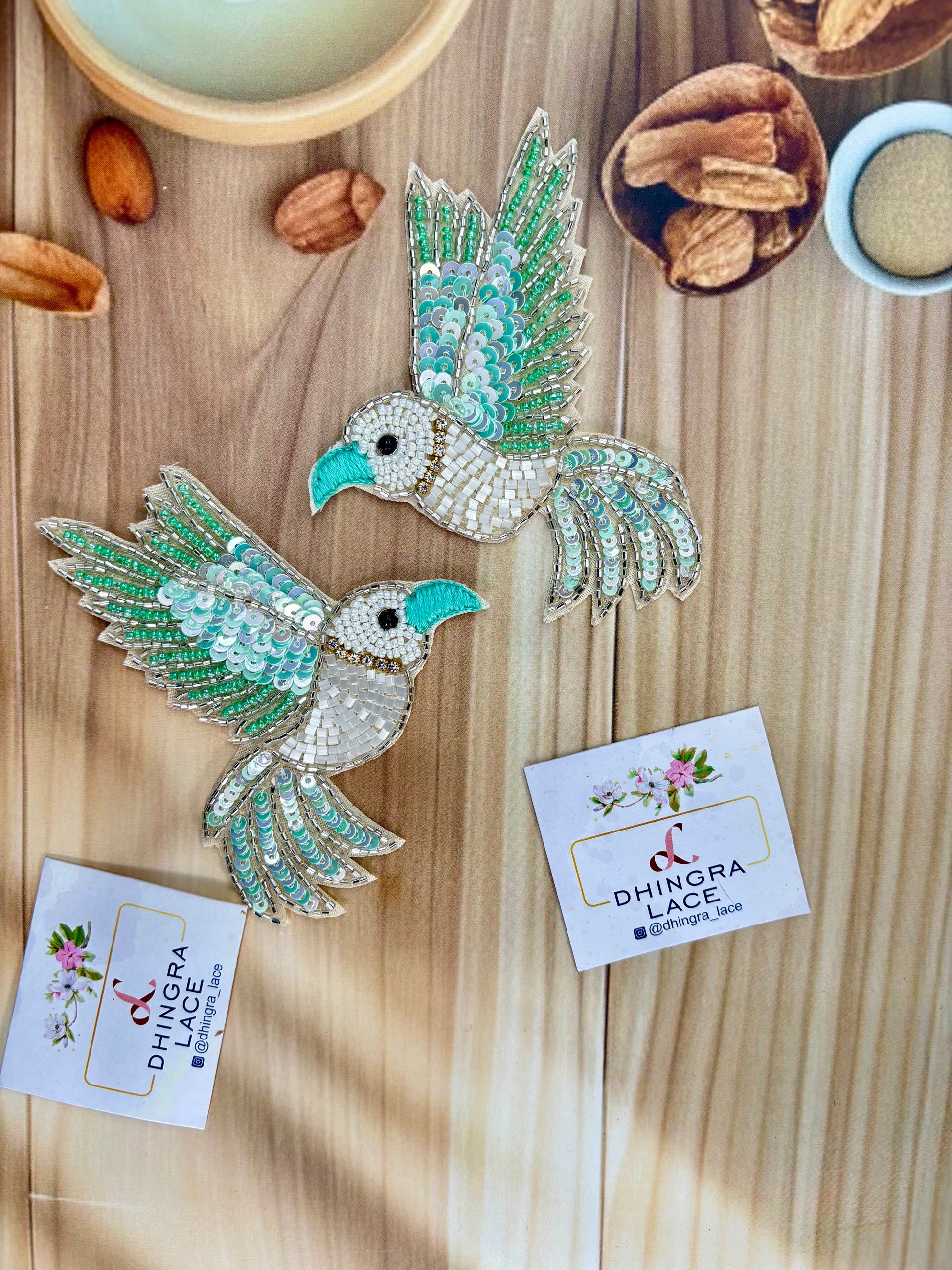Beautiful Handwork Bird Patch Left Sea Green 071025