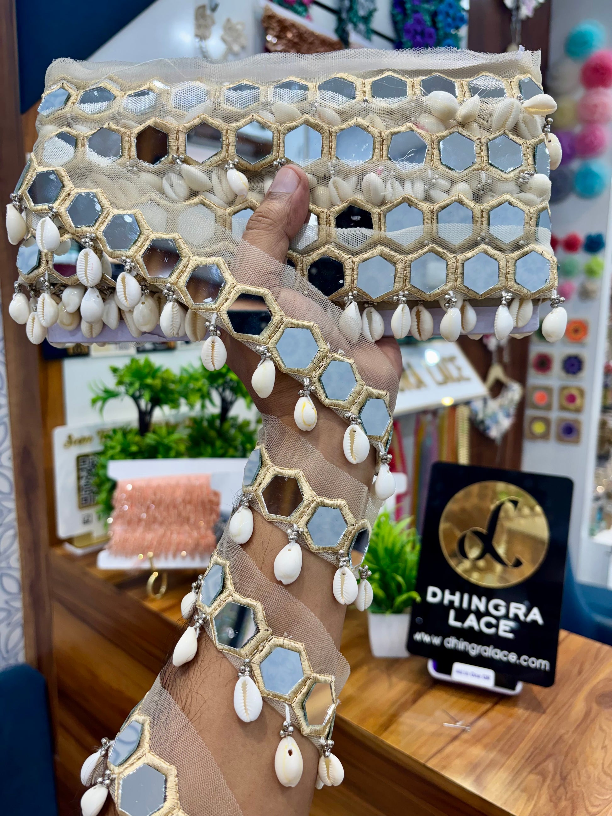 Beautiful Mirror Work Hanging Lace Gold 260925
