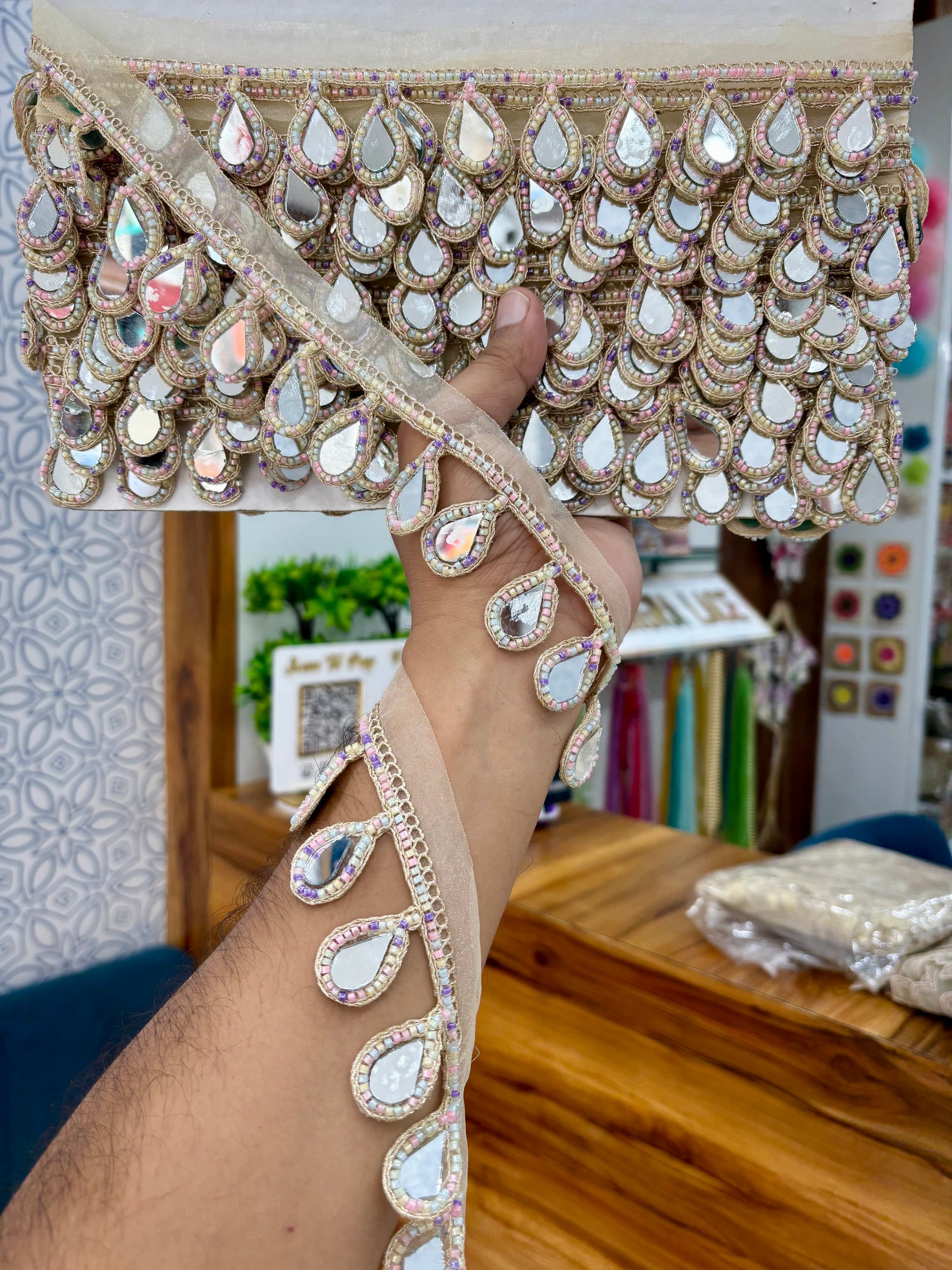 Beautiful Mirror Work Hanging Lace White Multi 060925