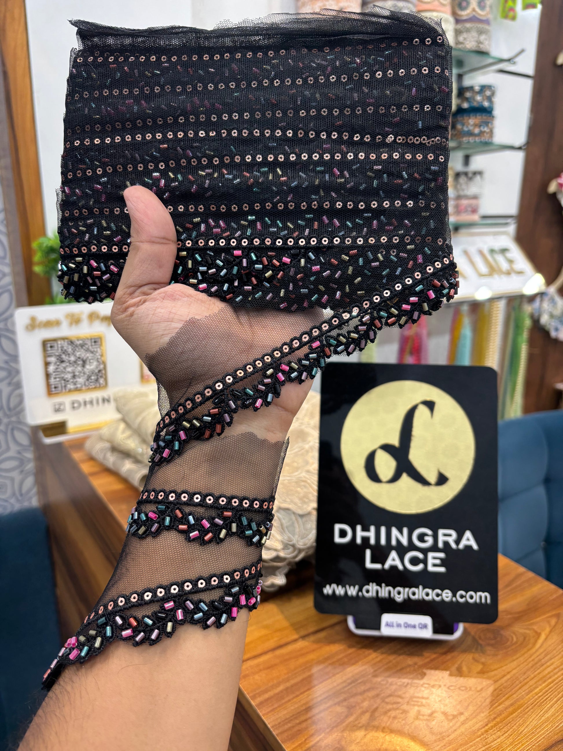 Beautiful Net Based Scallop Lace Black Multi 100925