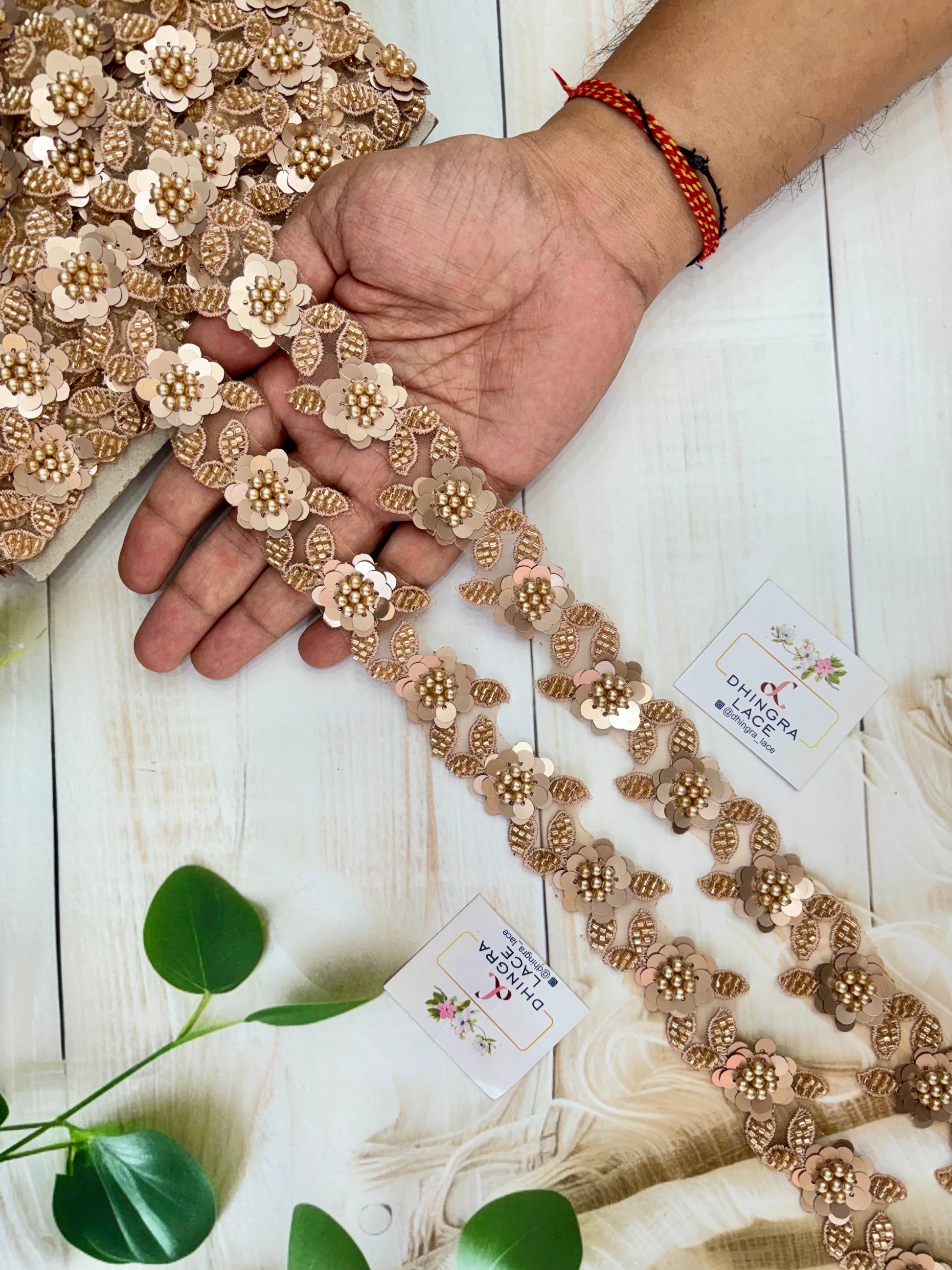 This exquisite lace features a beautiful organza base with delicate flower work in a luxurious rose gold hue. Perfect for adding a touch of elegance and sophistication to any project. Expertly crafted with attention to detail, this lace is sure to impress.