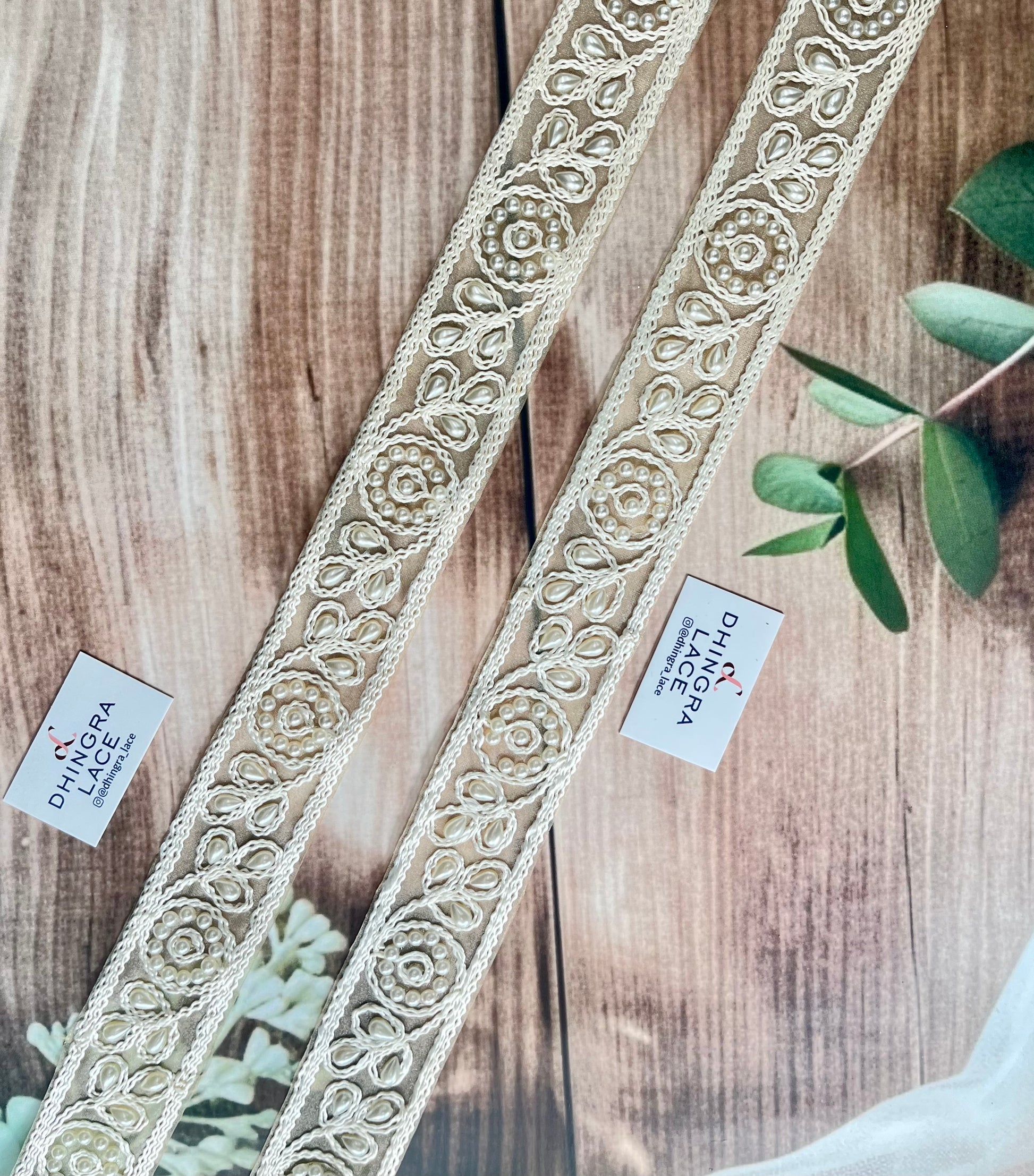 Beautiful Organza Based Thread And Pearls Work Lace 171125