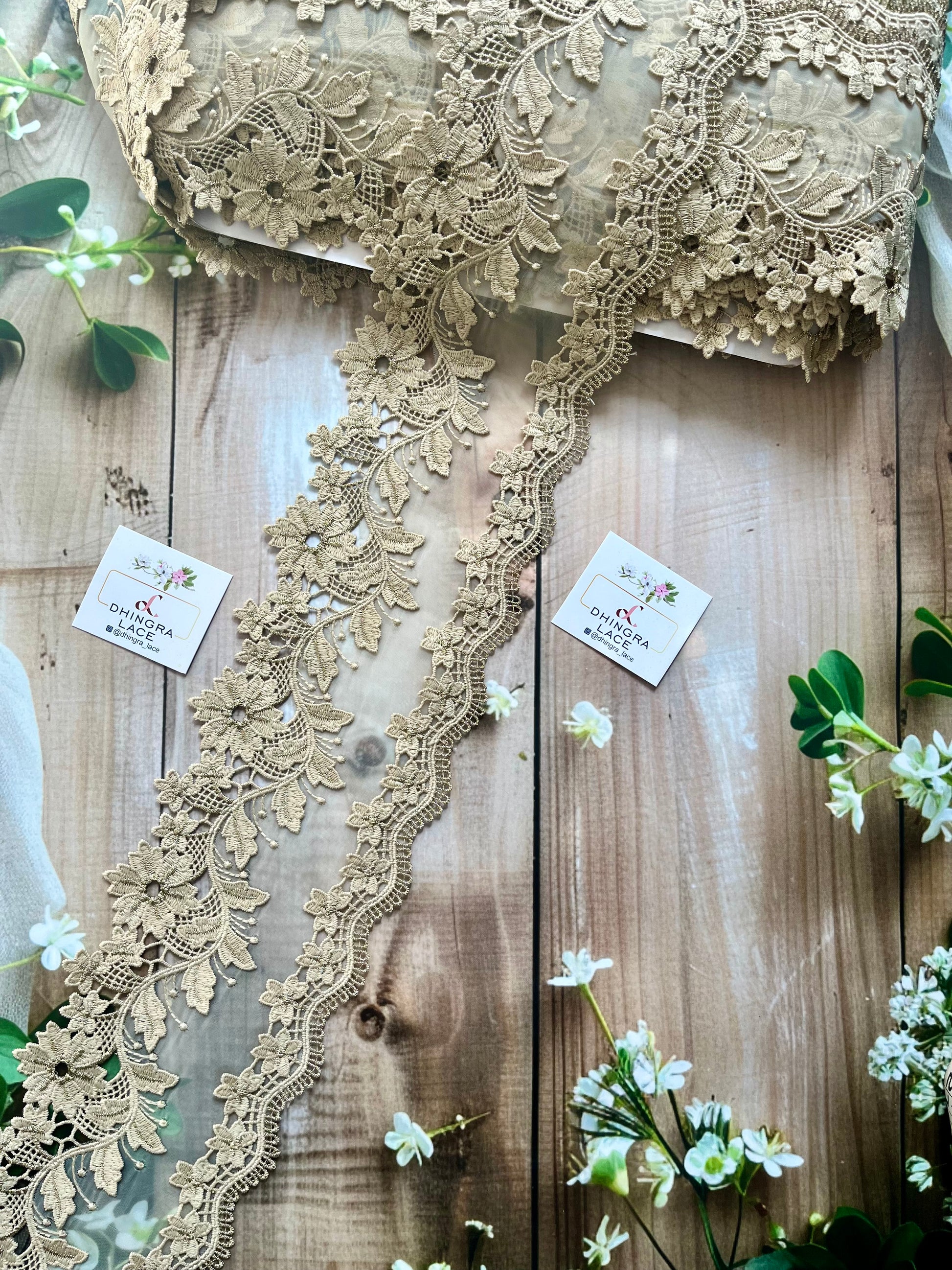 Beautiful Organza Based Threadwork Lace Beige 090825
