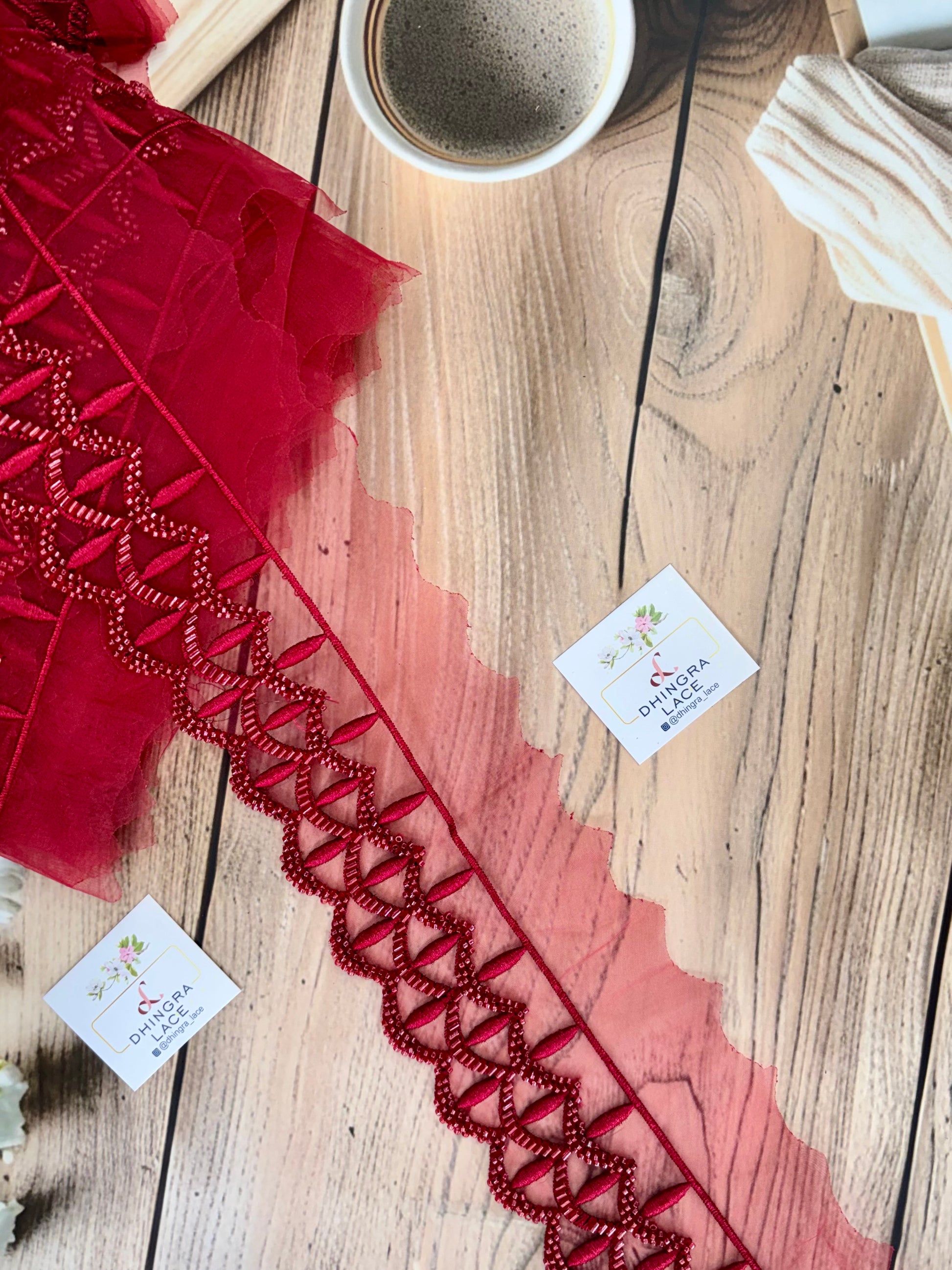 Beautiful Organza Based Threadwork Or Cutpipe Work Lace Maroon 200925