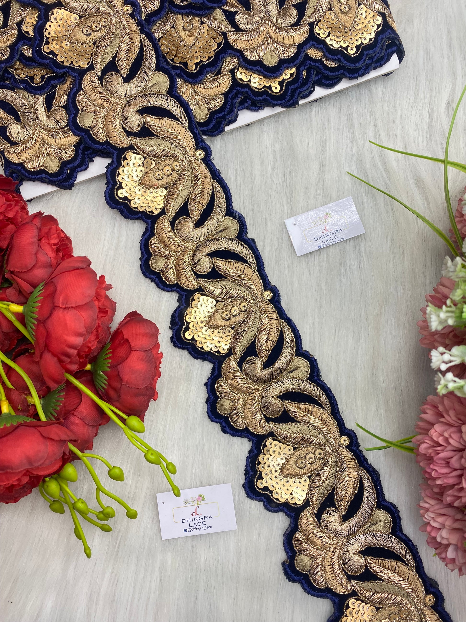 Beautiful Velvet Based 2 Inches Broad Cutwork Lace Navy Blue 9 Meters 070126/090126